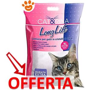 Cat&Rina Long Life Lettiera per Gatti ai Cristalli di Silice - Super Assorbente, Priva di Polvere, Anti Odore, 16L
