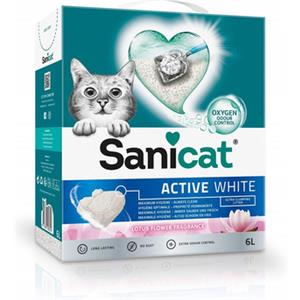 Sanicat Lettiera Agglomerante Active White Fiore di Loto - 6L, Alta Assorbenza e Controllo Odori