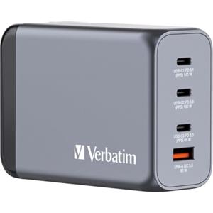 Verbatim GNC-240 GaN Charger 240W - Caricatore da Parete Universale con 3 Porte USB-C (140W, 100W, 65W) e 1 Porta USB-A QC 3.0 - Nero e Grigio
