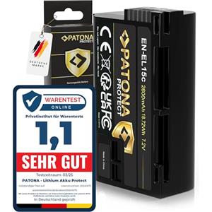 PATONA PROTECT Batteria per Nikon EN-EL15C - Ioni di Litio 2250/2600 mAh con Sensore NTC e Custodia Protettiva V1