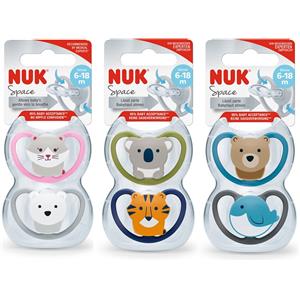 NUK Succhietto Space Silicone 6-18 Mesi - 2 Pezzi con Design Innovativo e Fori di Ventilazione
