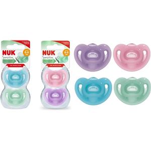 NUK Succhietto Sensitive in Silicone 0-6 Mesi - 2 Pezzi, Forma Ortodontica e Scudo Flessibile