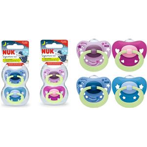 NUK Succhietto Signature Night in Silicone 0-6 mesi - 2 Pezzi, Tettina Ortodontica che si Illumina al Buio