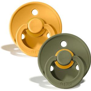 BIBS Colour Ciuccio in Lattice Naturale - Confezione da 2 Pezzi, Tettarella Tonda, Misura 2 (6-18 mesi), Colori Honey Bee e Olive