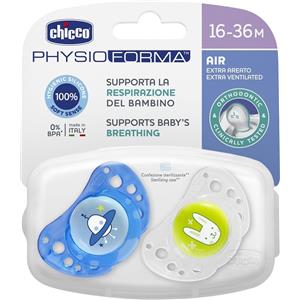 Chicco Succhietto Air Boy in Silicone 16-36 Mesi - 2 Pezzi con Tettina Attiva per Sviluppo Orale