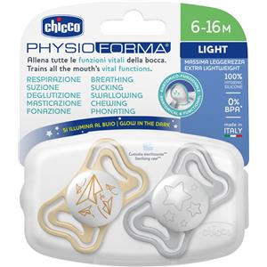 Chicco Succhietto PhysioForma Light Lumi in Silicone 16-36 Mesi - Extra Leggero e Luminescente, 2 Pezzi