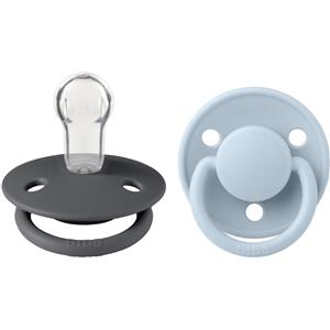 BIBS De Lux Ciuccio in Silicone con Tettarella Rotonda - Confezione da 2 Pezzi, Colore Iron/Baby Blue, Privo di BPA, 0-36 Mesi