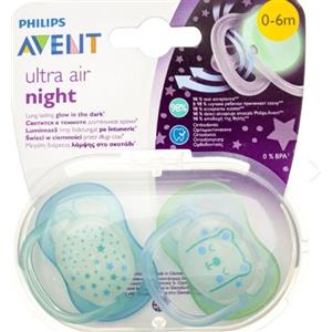 Philips Avent Succhietto Ultra Air Night 0-6 Mesi - 2 Pezzi, Leggero e Traspirante con Tettarella Vellutata