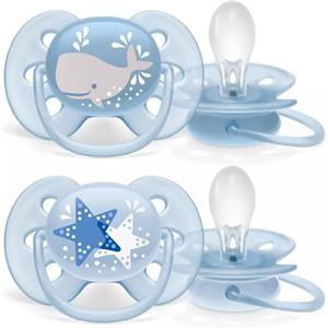 Philips Avent Ultra Soft Succhietto Whale/Star Maschio 6-18 Mesi - 2 Pezzi in Silicone Ortodontico
