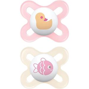 MAM Ciuccio Original Start 0-2 mesi in Caucciù Naturale Bio-Circolare - Set da 2 con Custodia Porta Succhietto, Rosa e Beige