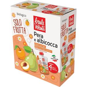 Baule Volante Solo Frutta Bio Pera e Albicocca - Purea 85% Pera e 15% Albicocca, Senza Glutine e Senza Zuccheri, 4x100g