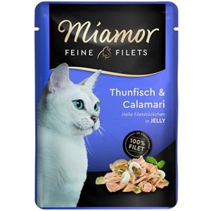 Miamor Feine Filetti di Tonno e Calamari in Gelatina - Cibo Umido per Gatti 100 g