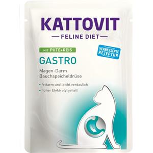 Kattovit Cibo Umido Dietetico per Gatti - Tacchino e Riso - 85 g - Supporto per Insufficienza Digestiva e Pancreatica