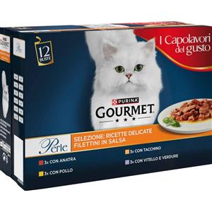 Gourmet Perle Cibo Umido per Gatti - Multipack 12x85g con Anatra, Pollo, Tacchino e Vitello