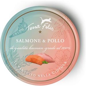 Terra Felis Cibo Umido per Gatti Salmone e Pollo 80g - Alimento Completo con 90% Pesce e Carne, Senza Cereali
