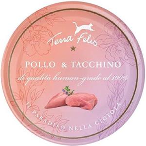 Terra Felis Cibo Umido per Gatti Pollo e Tacchino 80g - Alta Qualità, 90% Carne, Senza Cereali