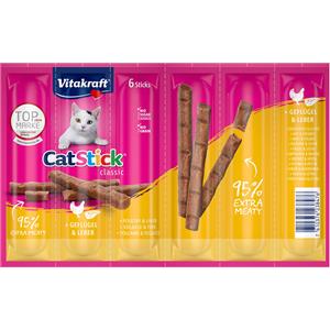 Vitakraft Cat Stick Classic - Bastoncini per gatti con Pollo e Fegato, 6 x 6 g, Snack senza zucchero e cereali