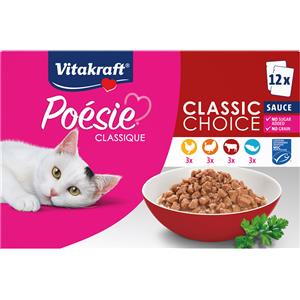 Vitakraft Poésie Classique Multipack Umido per Gatti - 12 Buste da 85 g con Pollo, Tacchino, Manzo e Salmone in Salsa, Senza Zuccheri e Cereali