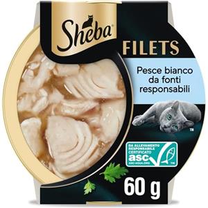 Sheba Filets 16 x 60gr Cibo Umido per gatti con Pesce Bianco BOX da 16 vaschette da 60g ognuna