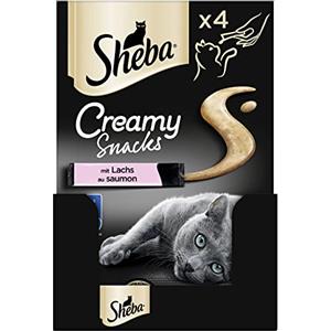 Sheba Creamy Snacks al Salmone - Snack Cremoso per Gatti, 4 Bustine da 12g in Alimenti Cani e Gatti