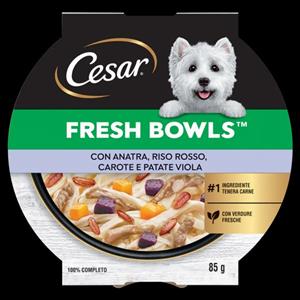 Cesar Fresh Bowls Anatra e Riso Rosso 85 g - Alimento Umido Completo per Cani Adulti con Ingredienti Naturali