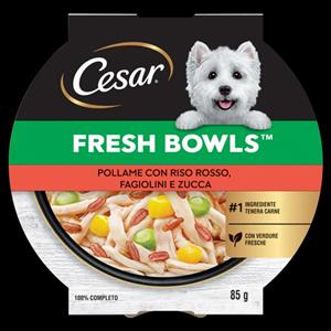 Cesar Fresh Bowls - Alimento Umido per Cani di Piccola Taglia con Pollame, Riso Rosso, Fagiolini e Zucca - 85 g