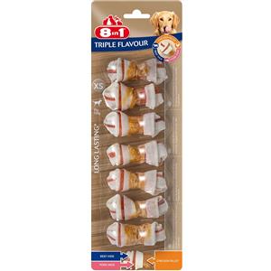 8IN1 Ossi Triplo Gusto XS - Snack da Masticare per Cani con Pollo, Bovino e Maiale - 7 Pezzi