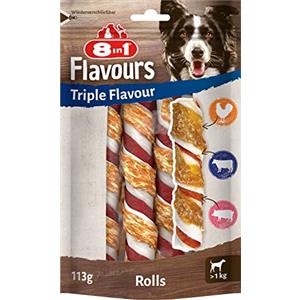 8in1 Triple Flavour Involtini Masticabili per Cani - Pelle di Maiale e Bovino Avvolti in Petto di Pollo, 113g