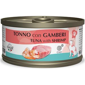 Marpet Chef Tonno con Gamberi - Cibo Umido per Gatti Adulti in Lattina da 80g, Senza Conservanti e Coloranti