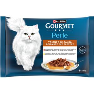 Gourmet Perle Trionfo di Salsa - Cibo Umido per Gatti con Manzo e Pollo, Multipack 4x85g