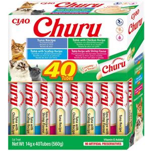 INABA Churu Snack Cremoso per Gatti - 40 Stick da 14g con Tonno e Frutti di Mare, Senza Conservanti e Coloranti