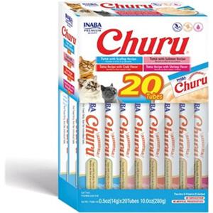 INABA Churu Snack Cremoso per Gatti - Mix di Tonno e Frutti di Mare in 4 Varietà - 20 Stick x 14g, Senza Conservanti