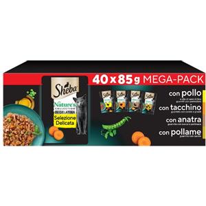 Sheba Nature's Collection Cibo Umido per Gatti - Selezione Delicata in Gelatina, 40 Bustine da 85g con Pollo, Tacchino, Anatra e Pollame