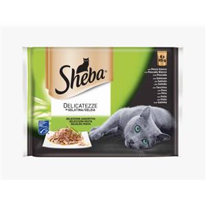 Sheba Delicatezze in Gelatina per Gatti - Selezione Assortita di Carne e Pesce, 4 Bustine da 85 g
