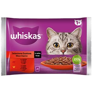 Whiskas Cibo Umido per Gatti Selezione Gustosa in Salsa - 4 Bustine da 85g con Bocconcini Irregolari e Ingredienti di Alta Qualità