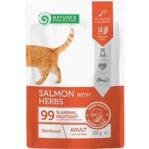 Nature's Protection Alimento Super Premium per Gatti Sterilizzati con Salmone ed Erbe in Salsa - Bustina da 100g