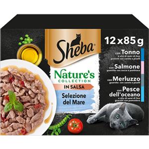 Sheba Nature's Collection Selezione del Mare in Salsa - Alimento Umido Completo per Gatti - 12 Bustine da 85 g con Ingredienti Naturali