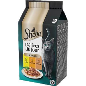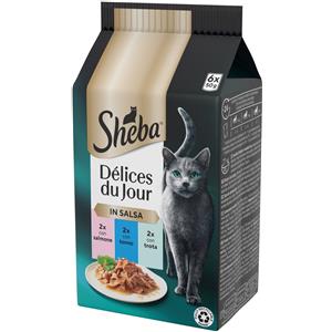Sheba Délices Du Jour - Cibo Umido per Gatti con Pollo, Salmone e Tacchino in Salsa - Multipack 6x50g