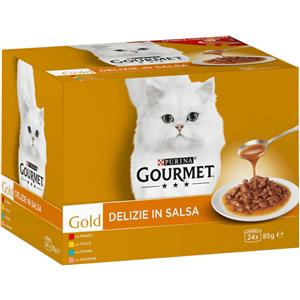 Gourmet Gold Delizie in Salsa per Gatti - Multipack 24x85g con Manzo, Pollo, Tonno e Salmone