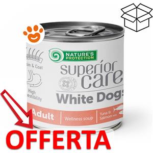 Nature's Protection Zuppa per Cani Adulto Tutte le Razze con Pelo Bianco - Tonno e Salmone 140 ml