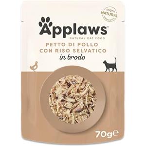 Applaws Alimento Umido per Gatti 100% Naturale - Petto di Pollo e Riso Selvatico in Brodo, 12 Buste da 70g
