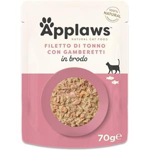 APPLAWS Alimento Umido per Gatti - Filetto di Tonno con Gamberi del Pacifico in Brodo, 12 Buste da 70g, 100% Naturale e Senza Additivi