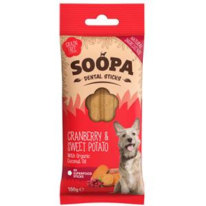 Soopa Dental Sticks - Snack Ipoallergenici per Cani con Mirtilli Rossi e Patate Dolci, 100% Naturali