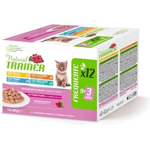 Natural Trainer Cibo Umido per Gattini Multipack 12 x 85g - Pollo, Tacchino, Tonno e Merluzzo con Estratto di Mirtillo Rosso