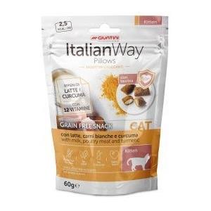 Italian Way Pillows Snack per Gatti con Latte, Carni Bianche e Curcuma - Grain Free 60g