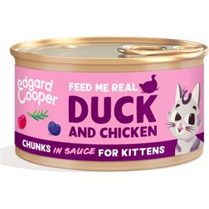 Edgard & Cooper Bocconcini in Salsa Anatra e Pollo per Gattini - 85 g, Senza Cereali, Ultra Succosi e Naturali