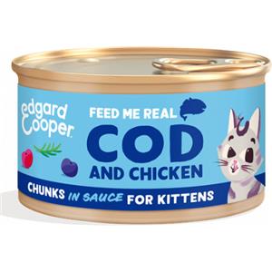 Edgard & Cooper Bocconcini in Salsa Merluzzo e Pollo per Gattini - 85 g, Senza Cereali e Ultra Succosi
