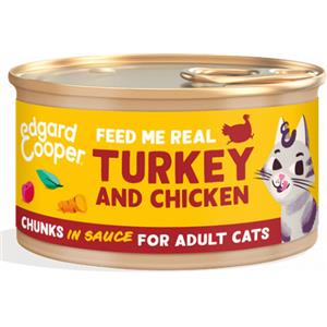 Edgard & Cooper Bocconcini in Salsa per Gatti Adulti con Tacchino e Pollo - 85g, Senza Cereali e Adatti a Gatti Sterilizzati