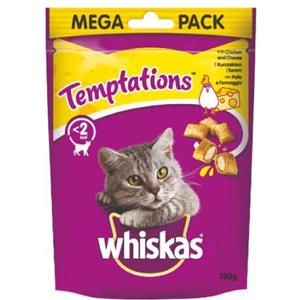 Whiskas Temptations Snack per Gatti con Pollo e Formaggio - 180 gr, Leggeri e Senza Aromi Artificiali