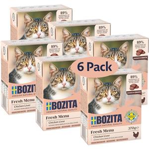 Bozita Cibo Umido per Gatti - Fegato di Pollo in Salsa, 370 g, Senza Cereali e Zucchero, Confezione da 6 o 24 Pezzi